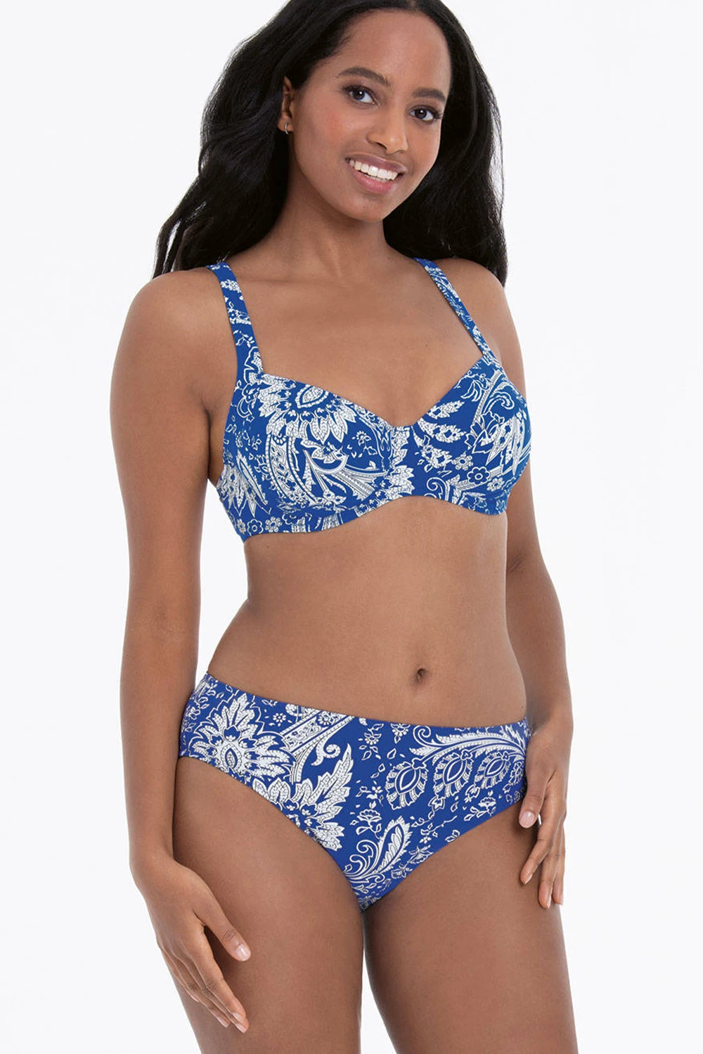 Das Bikini-Set Sibel mit „Special Big Cup Support“ bis Cup H vereint festen Halt mit einem stylischen Paisley-Look. Verstellbare Träger, gefütterte Cups mit Bügel und flexible Stäbchen garantieren erstklassigen Tragekomfort und optimale Stabilität. Das widerstandsfähige, weiche Soft-Touch-Material verleiht dem Bademodell hohe Elastizität und einen passgenauen Sitz. Ergänzt wird das Oberteil durch eine mittelhoch geschnittene Bikinihose.