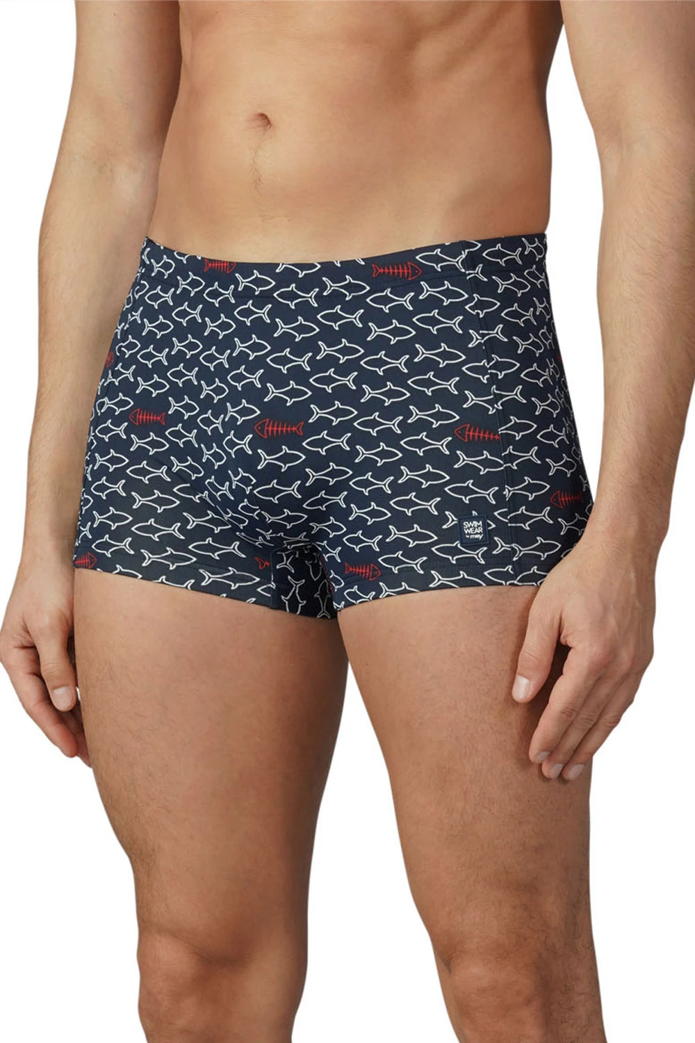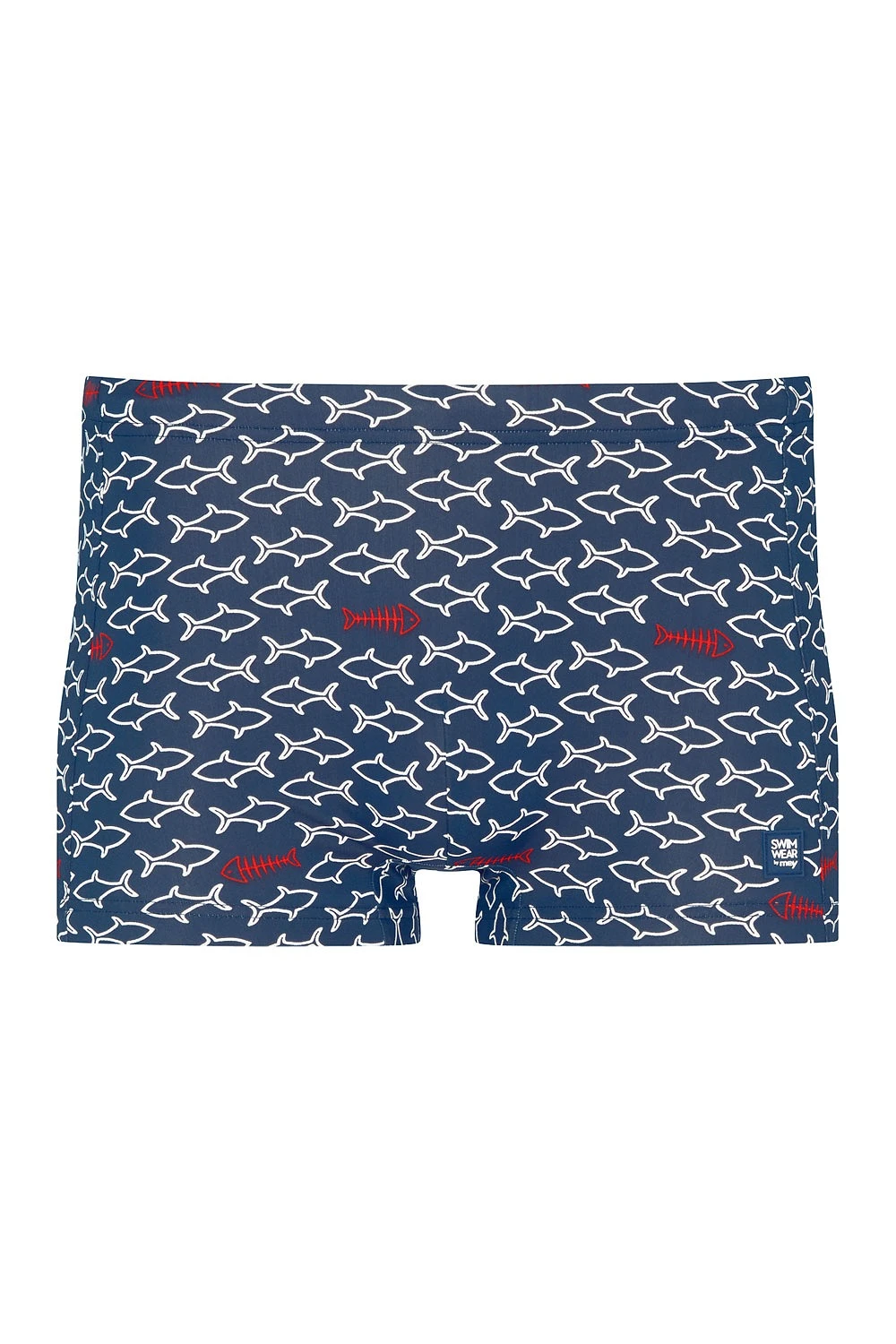Mit der coolen Bade-Shorty machen Sie am Beach garantiert eine gute Figur. Das enganliegende Modell von Mey zeigt sich mit einem trendigen Allover Fisch Print im Farbton Yachtblue: viele weiße Haie und einige rote Fischgräten, die in die entgegengesetzte Richtung schwimmen. Doch nicht nur das Design überzeugt, dank schnelltrocknenden, elastischen Materials und eines integrierten und geformten Suspensoriums können Sie sich über erstklassigen Tragekomfort freuen!