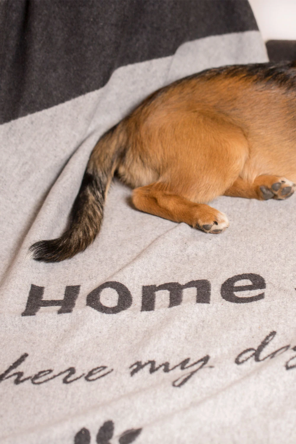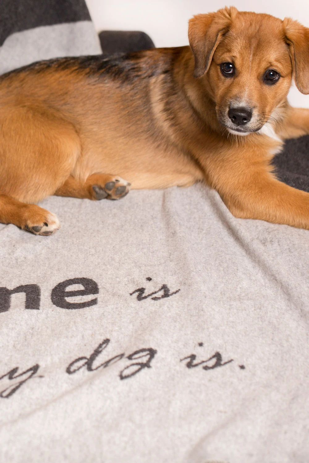 Auch Hunde sollen nicht zu kurz kommen, daher kreiert David Fussenegger jährlich eine eigens für Haustiere entwickelte Kollektion. Diese hübsche Decke bietet eine gewohnt gute DF-Qualität, ist strapazierfähig und und weist ausgezeichnete Gebrauchs- und Pflegeeigenschaften auf. Sie ist praktischerweise auf zwei Seiten verwendbar. Die melierten Farbtöne, der sympathische Spruch und die Pfotenabdrücke passen stilvoll zum Wohnambiente. Größere Abmaße erlauben, die Unterlage doppelt zu legen. Auf jeden Fall bietet die hübsch eingefasste Decke Ihrem Liebling einen Ort, an dem er sich gemütlich ausruhen kann.