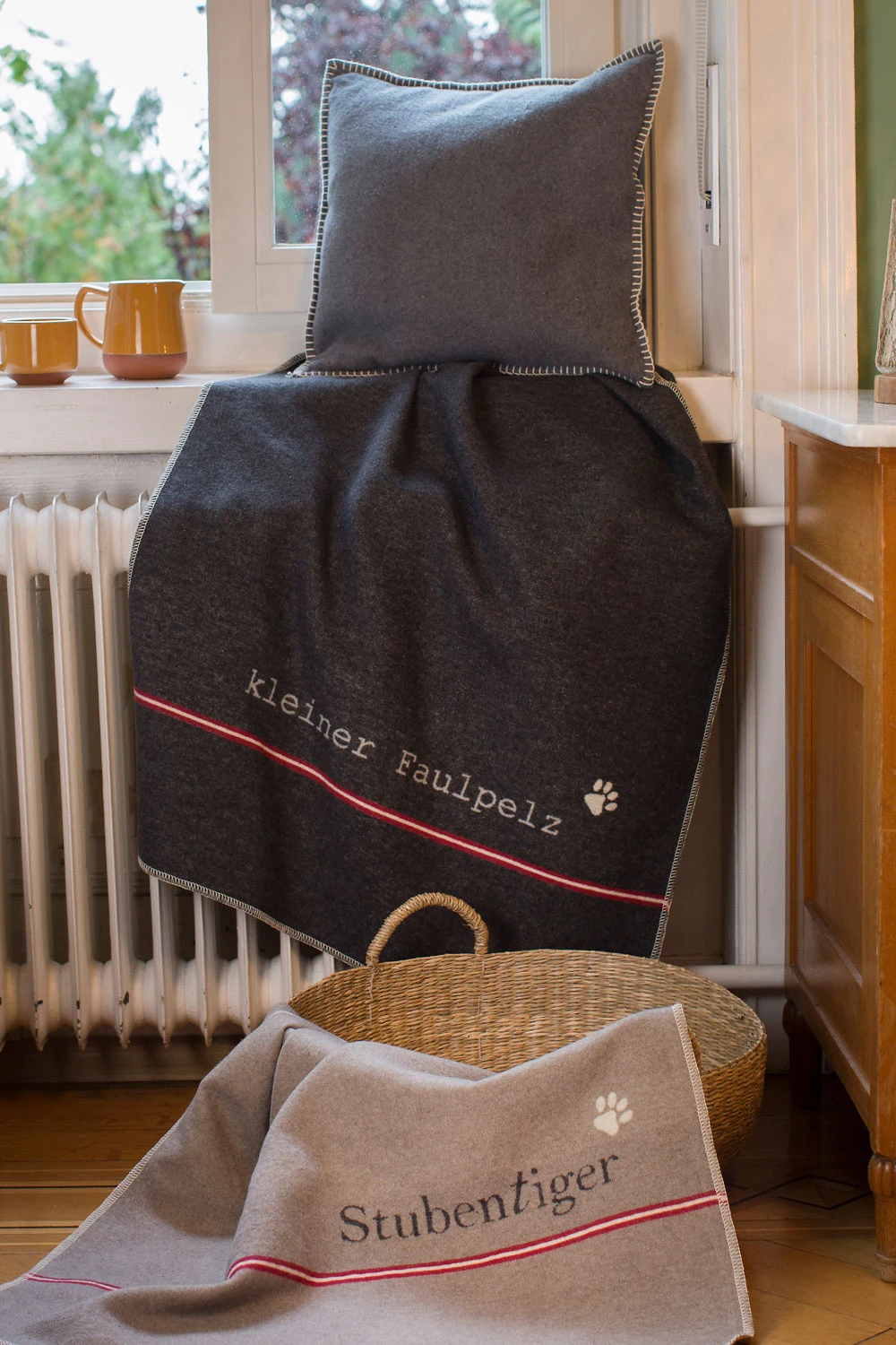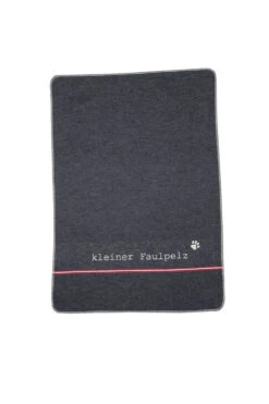 Auch Hunde und Katzen sollen nicht zu kurz kommen, daher kreiert David Fussenegger jährlich eine eigens für Haustiere entwickelte Kollektion. Diese hübsche Decke bietet gewohnte DF-Qualität, ist strapazierfähig und und weist ausgezeichnete Gebrauchs- und Pflegeeigenschaften auf. Das melierte Anthrazit, der sympathische Schriftzug mit kleiner Pfote und die attraktive rote Linie passen sich stilvoll ins Wohnambiente ein. Mit ihrer angemessenen Größe bietet die hübsch eingefasste Decke Ihrem Liebling einen Ort, an dem er sich wohlfühlen kann.