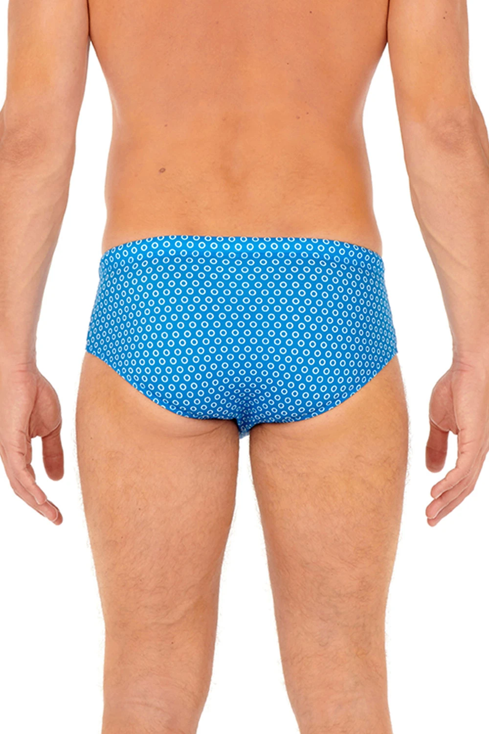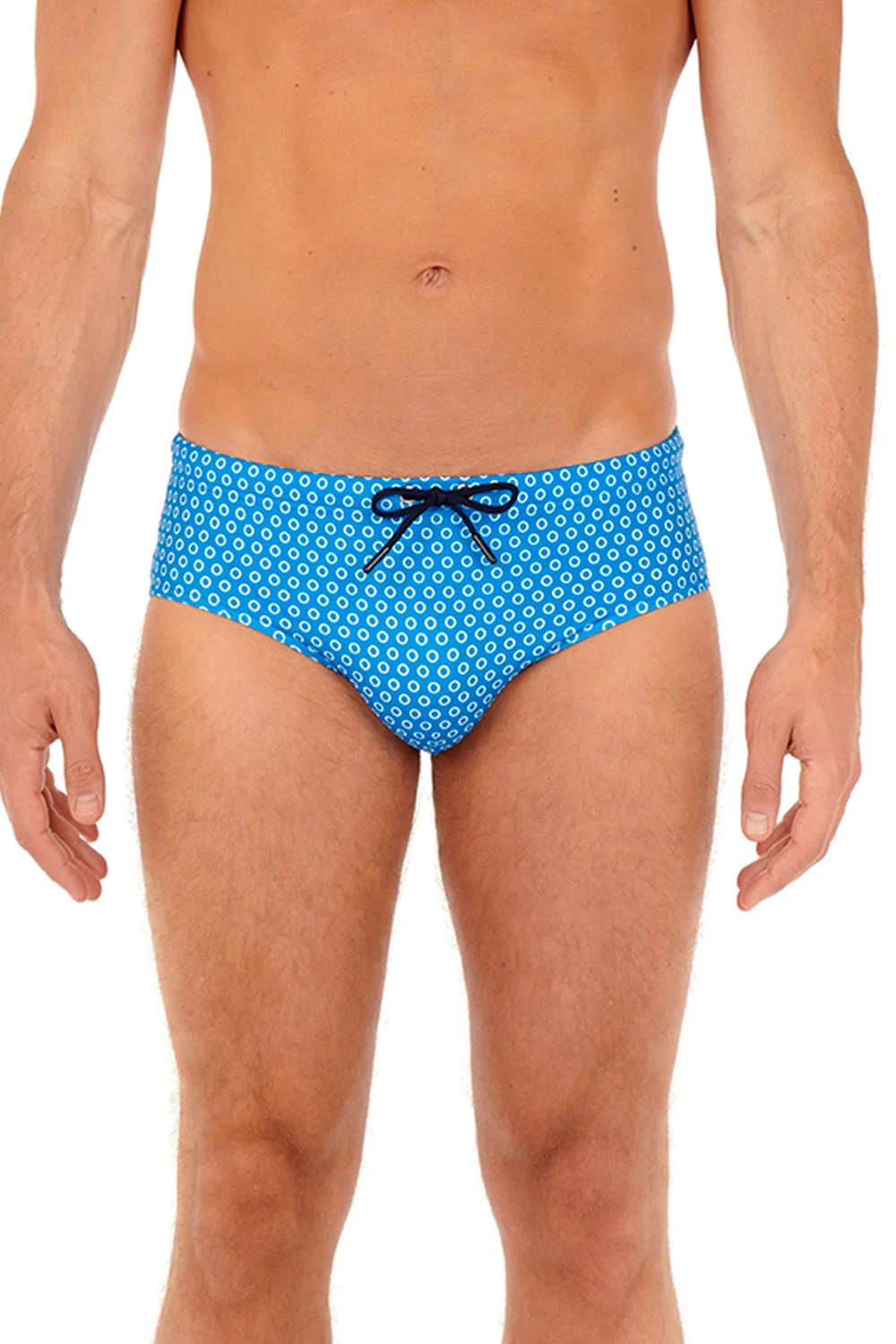 Badehose Lourmarin mit klassischer Mini-Passform von HOM, die Ihnen wunderbare Beinfreiheit verschafft. Sprudelnde Luftblasen im Wasser dienten als Inspiration für den trendigen Minimalprint, der unzählige weiße Kreise auf hellblauem Stoff abbildet. Ein Blickfang! Die Mini-Herrenbadehose besteht aus schnell trocknendem, langlebigem Elasthan-Polyamid, passt sich hervorragend an die Silhouette an und lässt sich dank Bindekordel passgenau einstellen.
