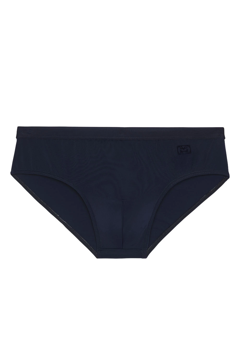HOM Mini-Badeslip in sportlich maskulinem, eng anliegendem Schnitt mit etwas breiteren Seiten, komfortablem Flachbund mit innen liegender Bindekordel für den perfekten Sitz. Das hochwertige Material aus Recycling-Polyamid und Lycra trocknet schnell und macht jede Bewegung mit. Ein kleines Markenlogo in Kontrastfarbe ziert das knappe Bademodell auf der Vorderseite.
