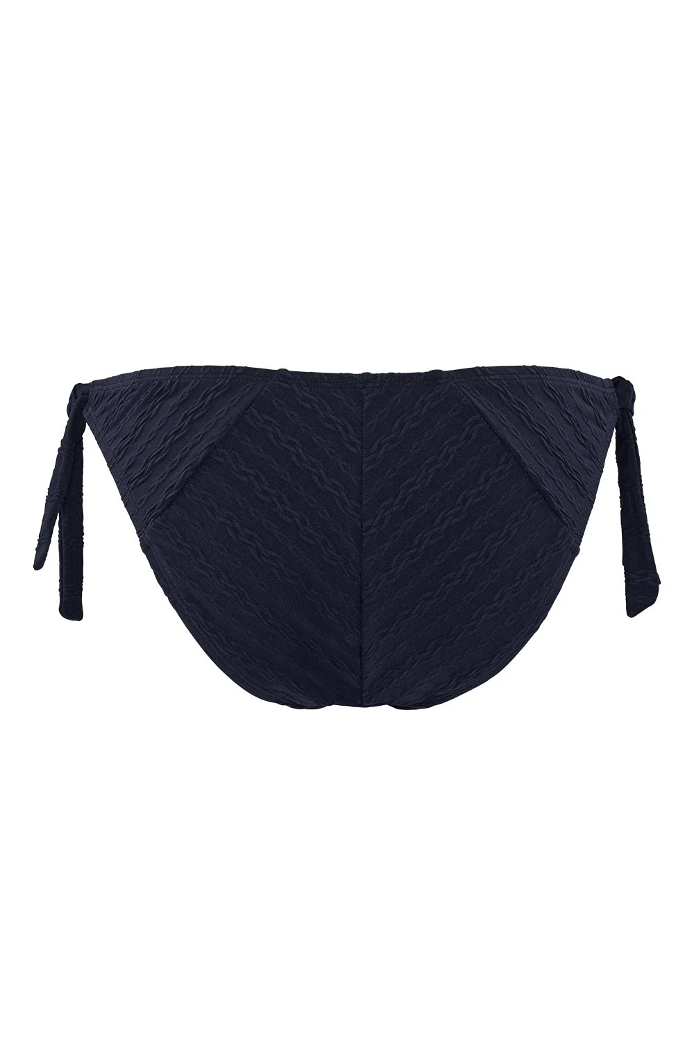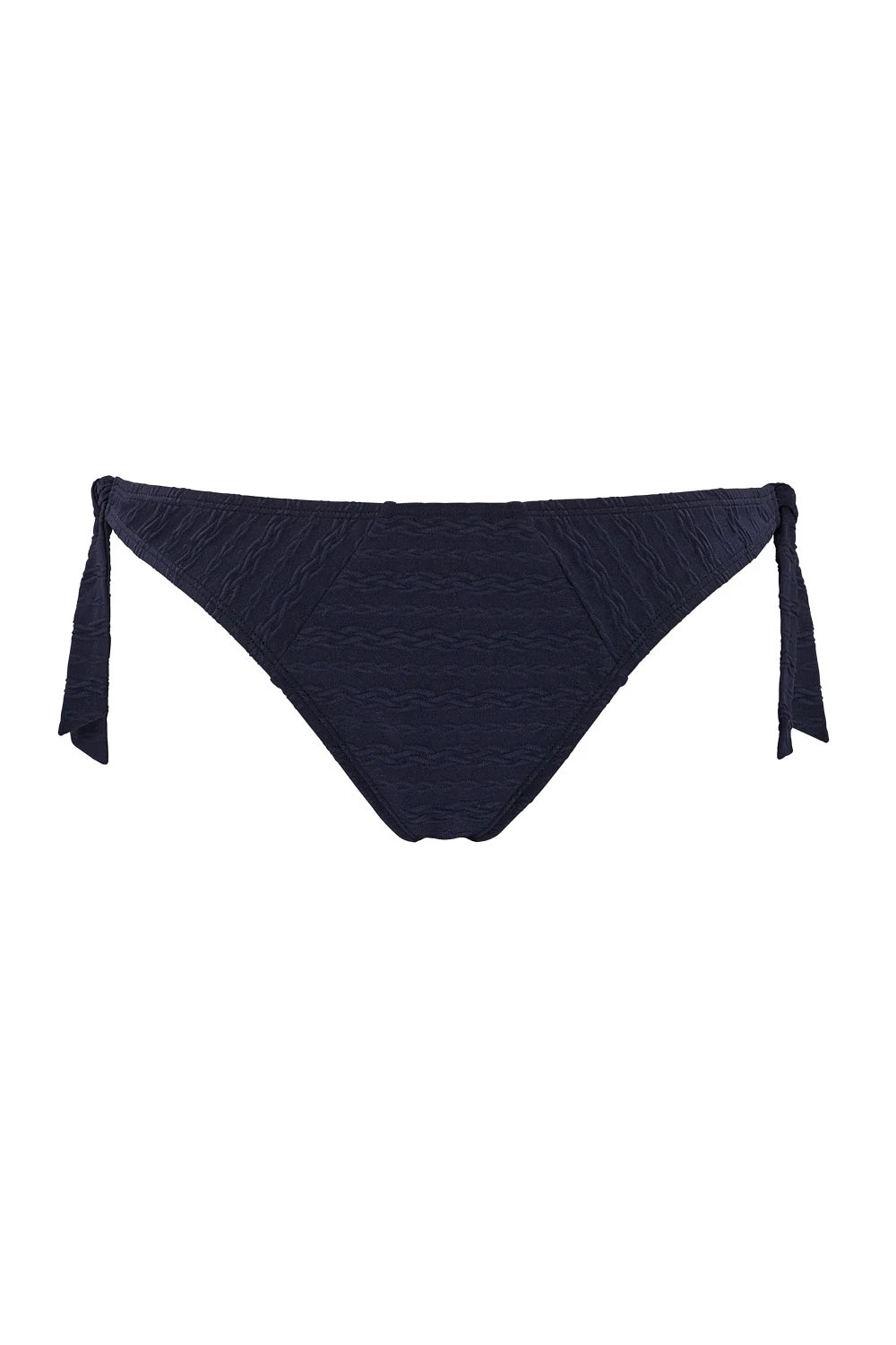 Bikinislip mit modisch hohem Beinausschnitt, klassisch und edel, aber gleichzeitig auch stylish! Die Farbe? So faszinierend wie das endlos blaue Meer. Schleifen auf beiden Seiten der Hüfte verhindern, dass der Stoff verrutscht. Das Höschen bedeckt knapp und tritt mit einem tonigen Jacquard-Muster in Erscheinung. Raffiniert! Mit seiner soliden Verarbeitung an allen Rändern ist es sehr komfortabel.