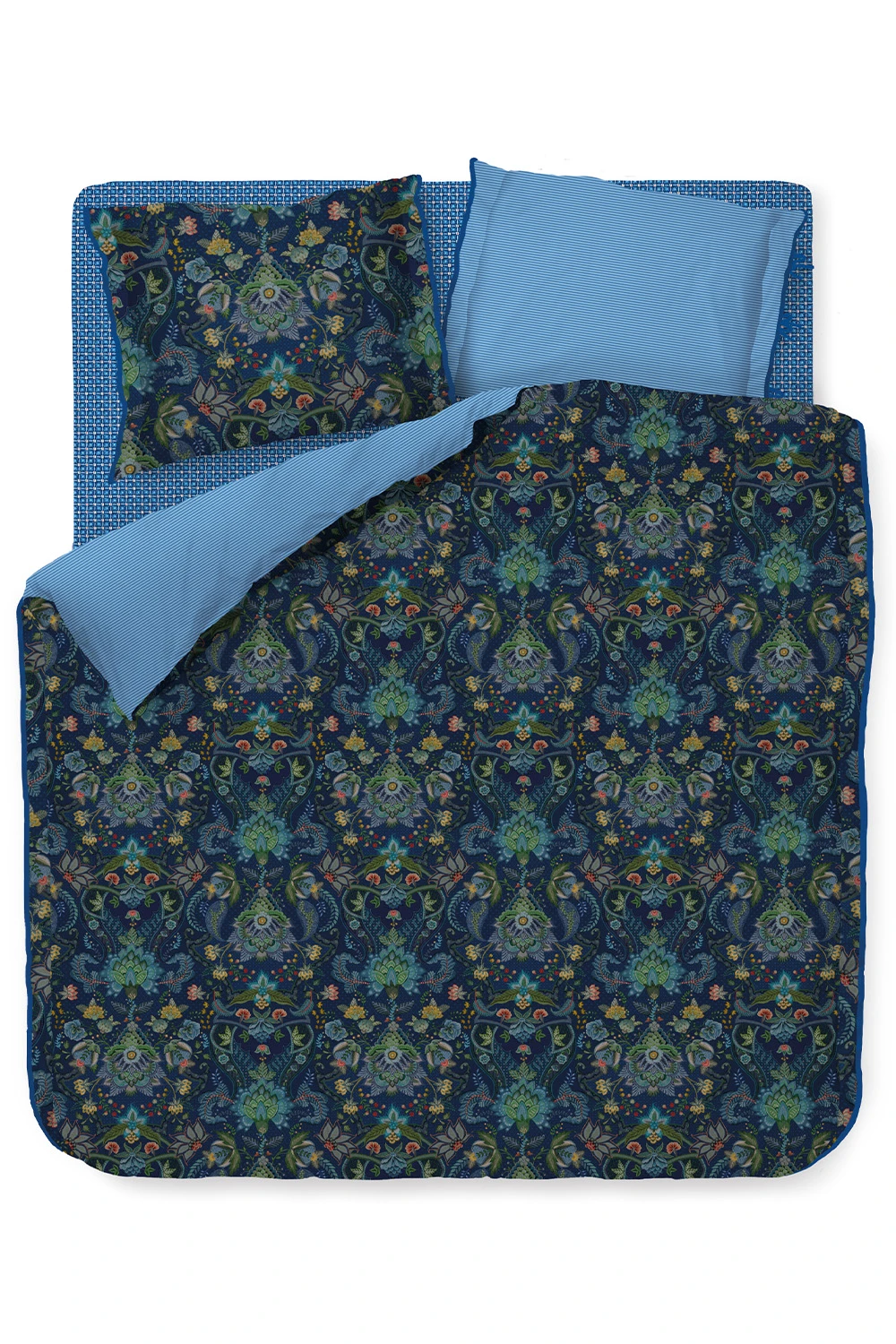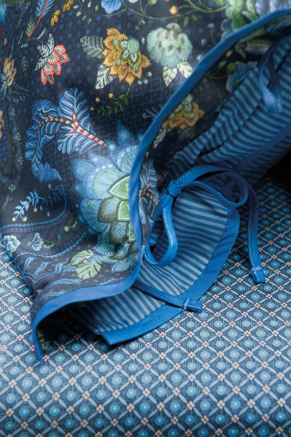 Diese feine, dicht gewebte Baumwollperkal-Bettwäsche vermag beinahe zu schimmern. Sie fühlt sich weich, leicht und glatt an – sehr edel. Ihre Verarbeitung mit einem zart gestreiften Zweitstoff lässt die dunklere Musterseite noch einmal kräftiger wirken. Verschiedenste floral inspirierte Fantasiemotive heben sich mit sparsam eingesetzten Farbtupfen hervor und bilden in der Gesamtheit einen wunderschönen Anblick. An den breit abgesteppten Seitenrändern setzen die aufwendigen Paspelierungen Akzente. Der Kissenbezug lässt sich auf einer Seite mittels dreier langer Bändchen überaus stilvoll verschließen. Maße: 155×220 cm Einzelbett mit 1x Kissenbezug 80×80 cm.