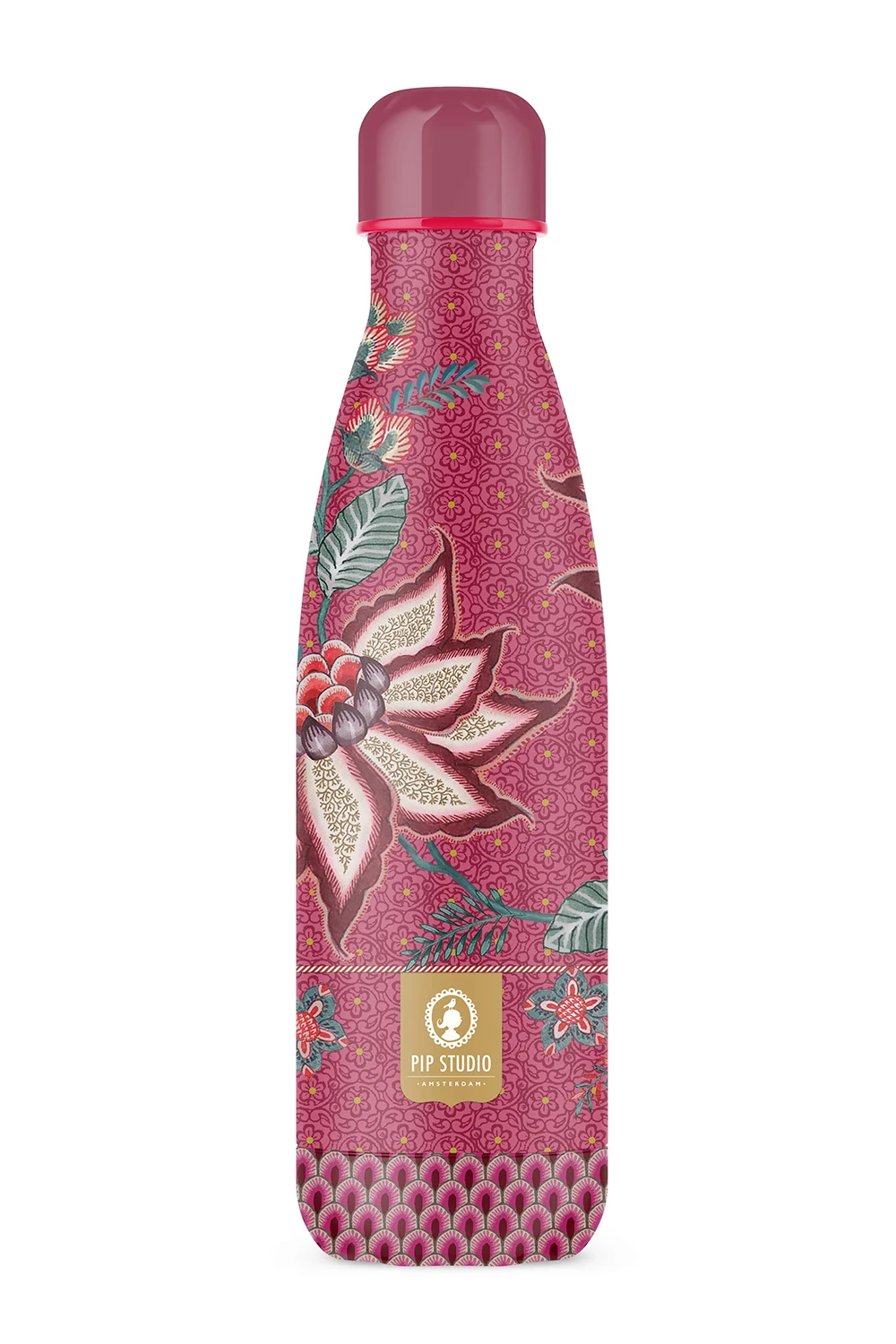 Die Thermosflasche in Dunkelrosa fasst 500ml und ist mit dem wunderschönen Flower Festival-Design bedruckt. Das Blumenmuster besteht aus einer Variation fantasievoller roter und rosafarbener Chintzblumen mit hellblauen und grünen Blättern. Die spielerisch platzierten Blütenzweige mit großen verzierten Blüten und Blättern machen dieses Design besonders raffiniert. Die Wasserflasche aus Edelstahl wurde in Zusammenarbeit mit Izy Bottles entworfen. Sie ist doppelwandig und BPA-frei, das heißt, sie ist frei von Plastik und schädlichen Substanzen und man kann damit lange Zeit kalte und heiße Getränke genießen. Sie lässt sich mit Seifenwasser reinigen und danach mit abgenommener Kappe auf dem Kopf stehend trocknen (nicht mikrowellen- und spülmaschinenfest). Getränke bleiben 24 Stunden kalt und 12 Stunden heiß.