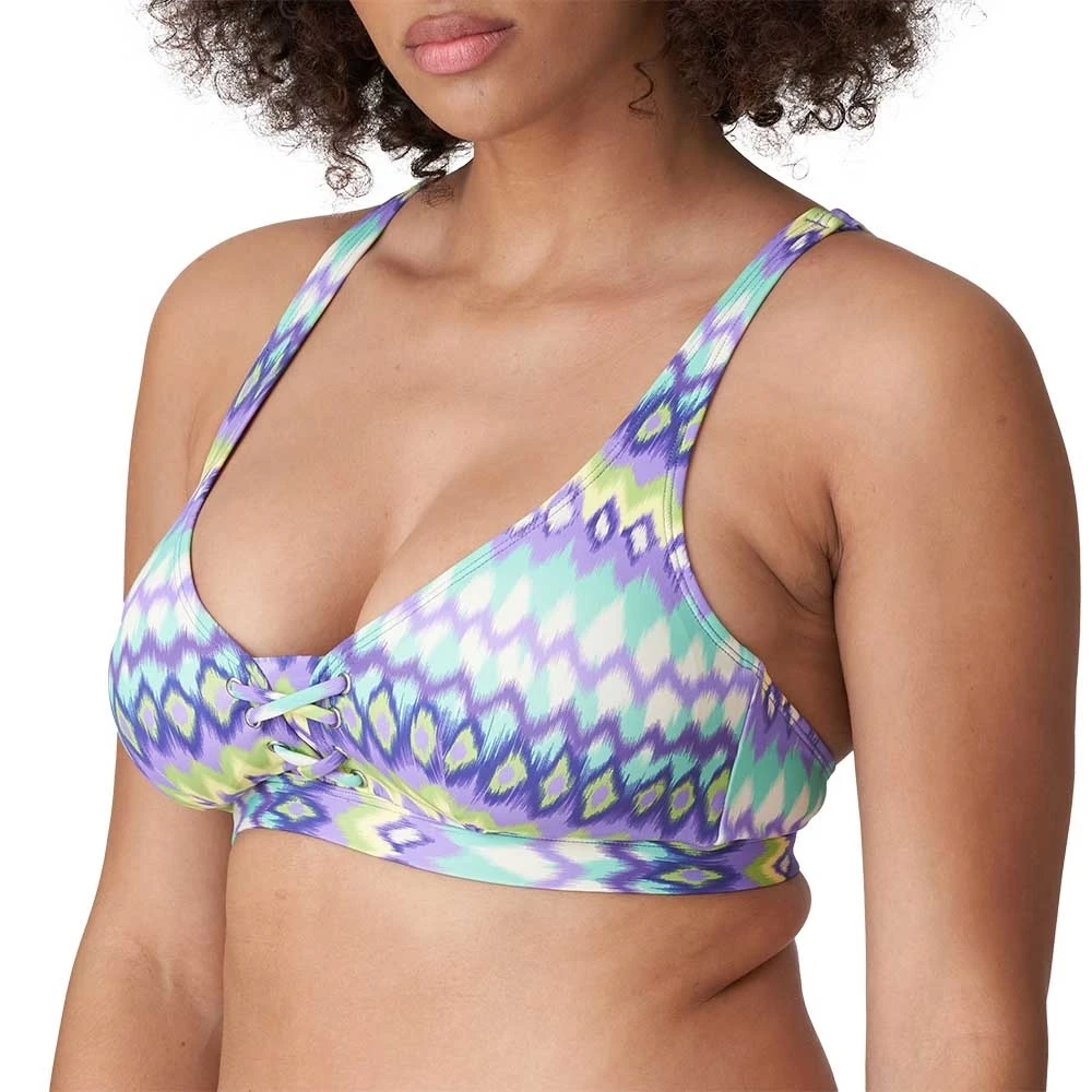 Cooles Triangel-Oberteil ohne Bügel mit Schnürung am Steg. Die gepolsterten Cups sind herausnehmbar und die Träger sind längenverstellbar.