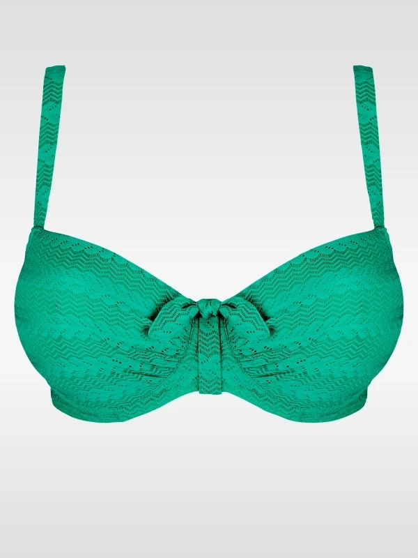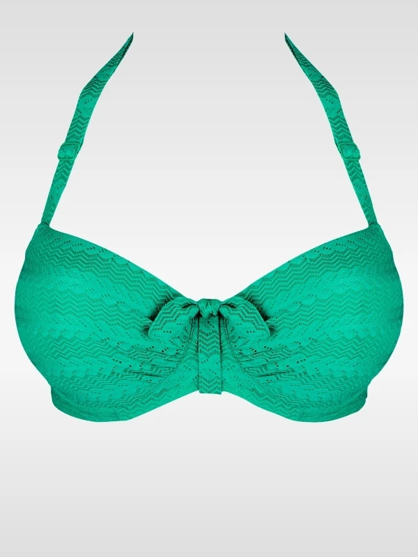 Ein Bikini-Oberteil mit einem sinnlichen Außenträgerschnitt und weichen unterlegten Cups, die einen Teil des oberen Busens entblößen. Die verstellbaren Bändchen lassen sich auch als Neckholder tragen. Entweder mit dem extra Neckholderverschluss oder durch Verknoten der Bändchen im Nacken. Die anschmiegsamen, unterlegten Cups sind komfortabel und verleihen dem Busen ein gutes Lifting. Der tief ausgeschnittene Außenträger enthüllt einen Teil des oberen Busens und ergibt einen sinnlichen Look.