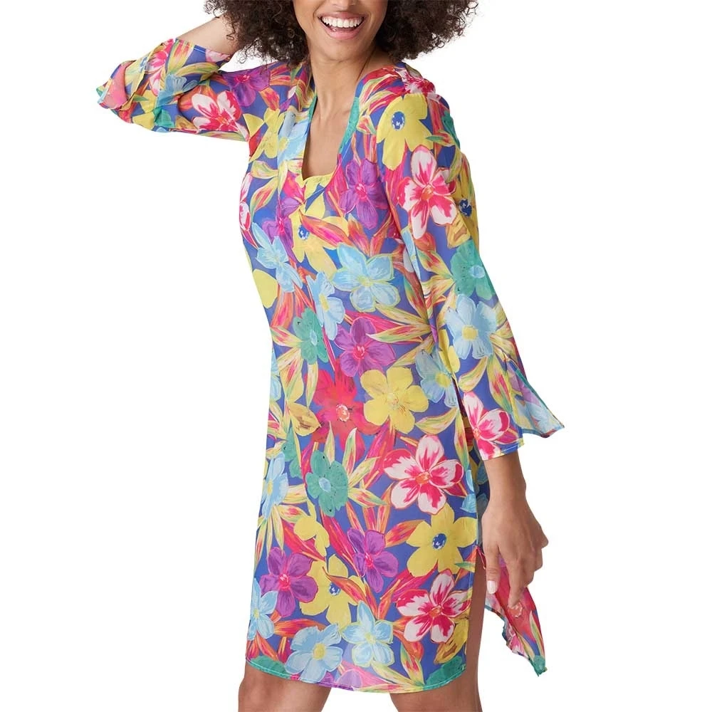 Blue Bloom kombiniert leuchtendes Blau mit sonnigem Pink, Orange und Neonakzenten.