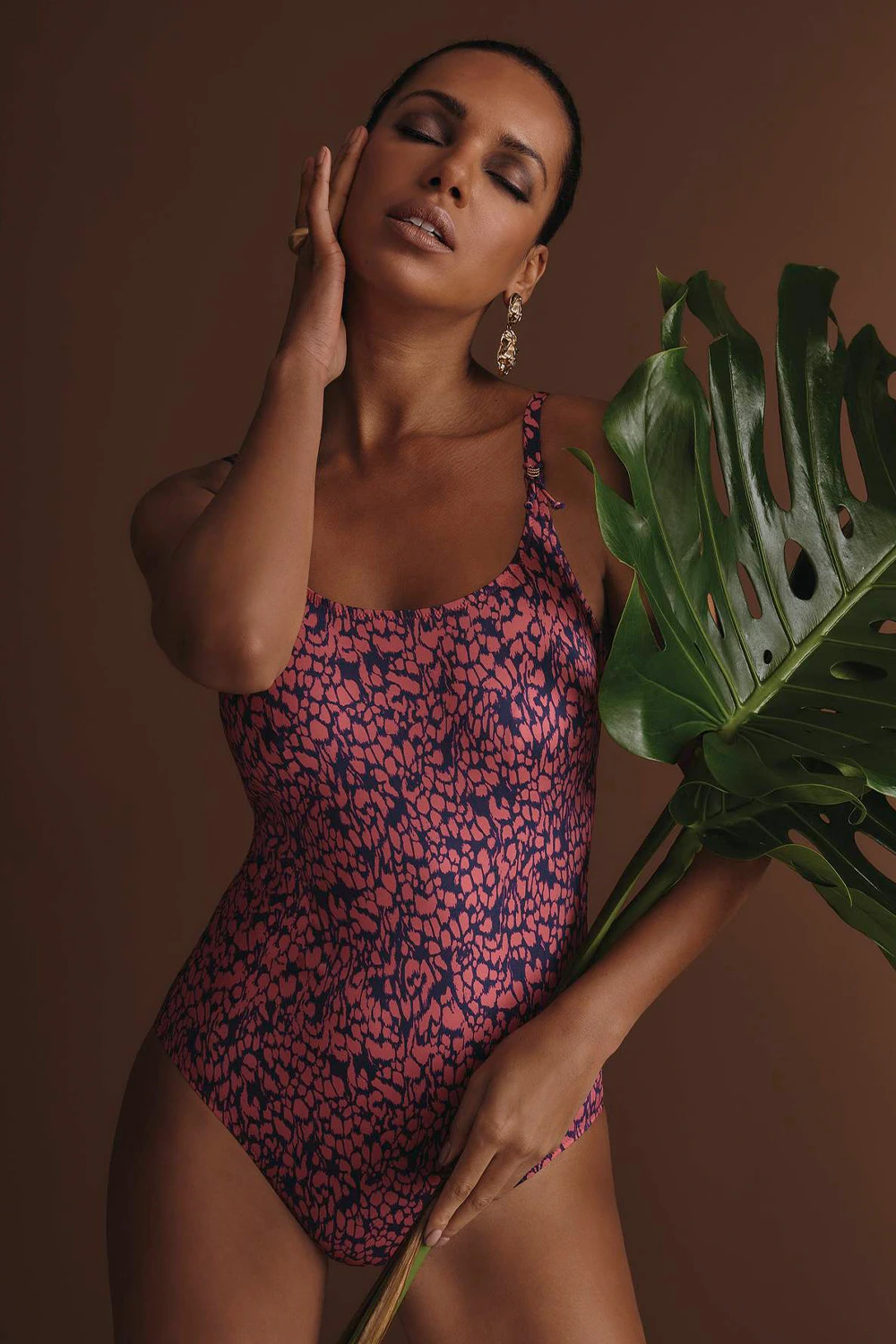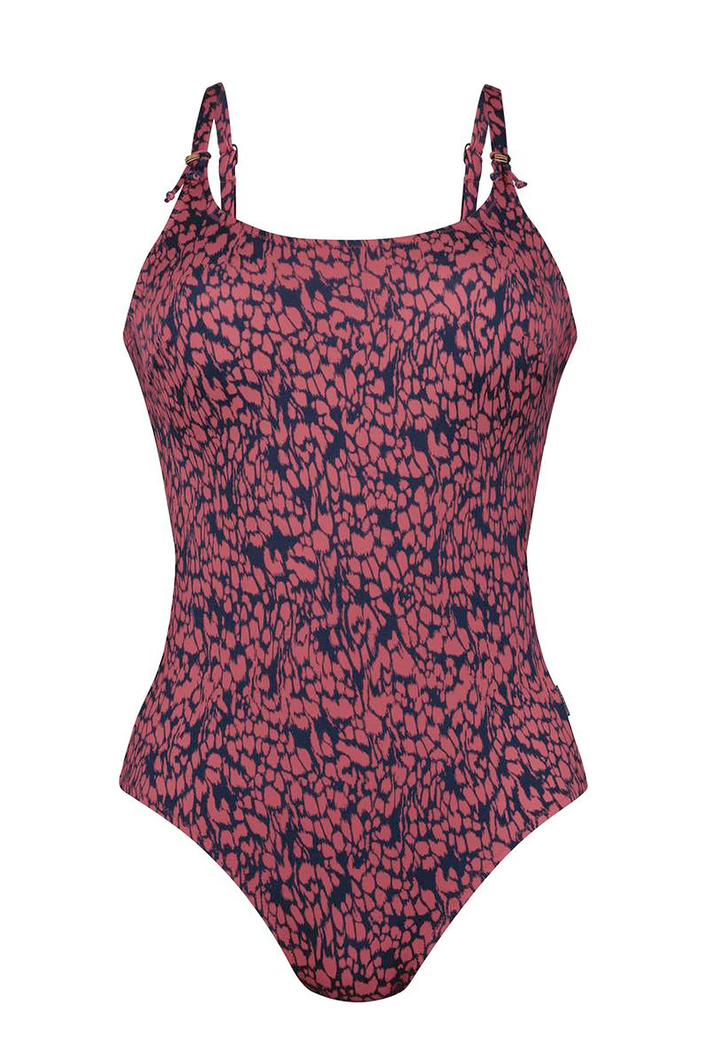 Wunderschöner Badeanzug mit filigranen Zierden an den Trägeransätzen und weitem u-förmigem Ausschnitt. Innen liegende Bügel gewähren konturierenden Halt und sichern eine attraktive Silhouette. Die schmalen Träger verlaufen parallel über die Schultern und sind hinten verstellbar. Eine runde Rückenöffnung und etwas höhere Beinränder lassen einen hübschen Anblick entstehen. Die Abschlüsse sind mittels kleiner Zickzacknähte versäumt, Farben und Muster bieten einen interessanten Blickfang.