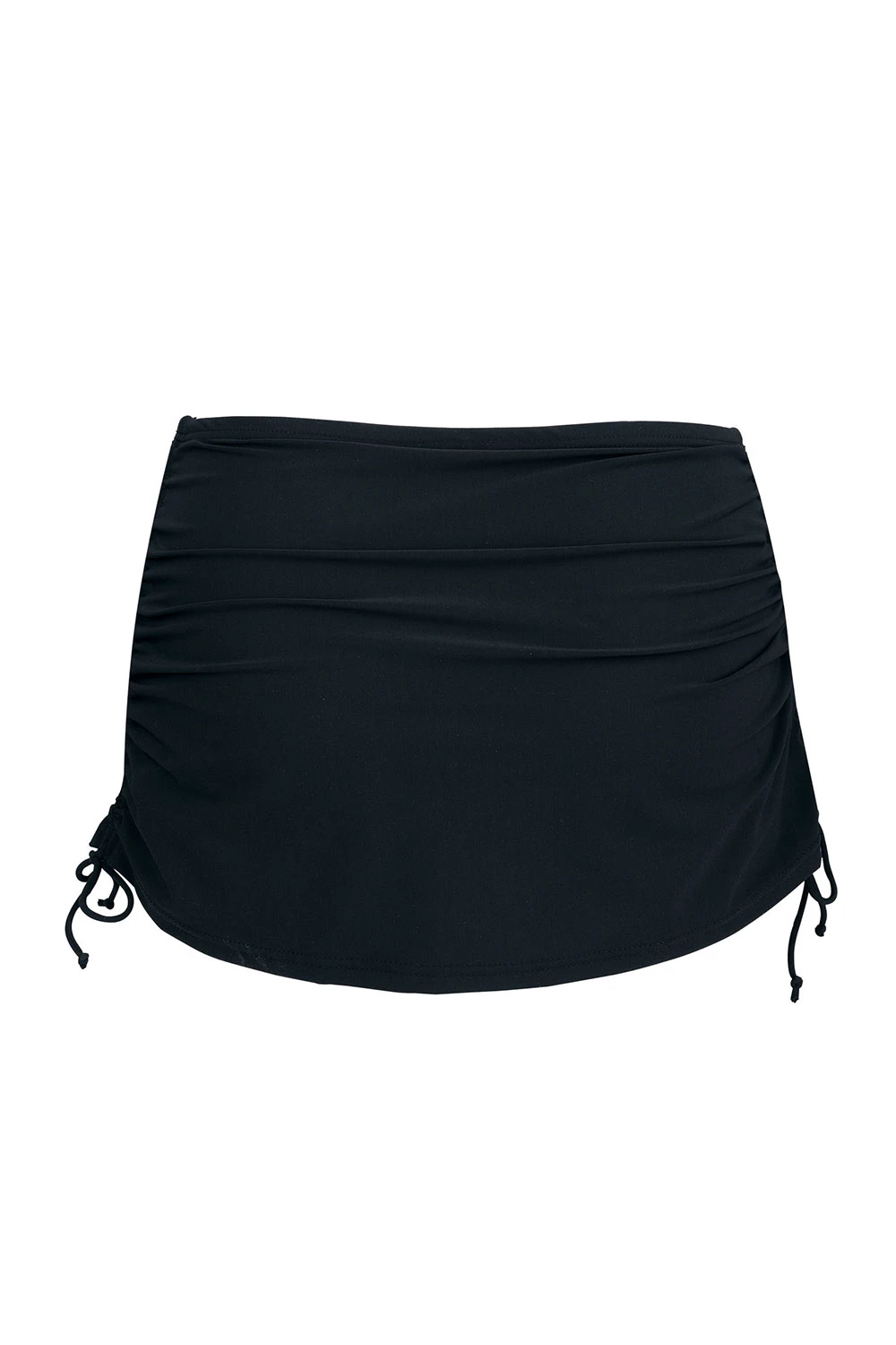 Charmantes Bikini-Unterteil mit einer Besonderheit: seitliche Bänder regulieren durch einen Tunnelzug den Beinausschnitt. Das Modell ist optisch ein gerafftes Röckchen und kaschiert mühelos kleinere Problemstellen. Der eingearbeitete Slip sorgt für ein angenehmes Tragegefühl. Das hochwertige, atmungsaktive Mikrofasergewebe verleiht dem Modell Leichtigkeit und dauerhafte Elastizität. Ergänzen Sie das trendige Bikini-Röckchen mit einem passenden Oberteil aus dieser Serie.