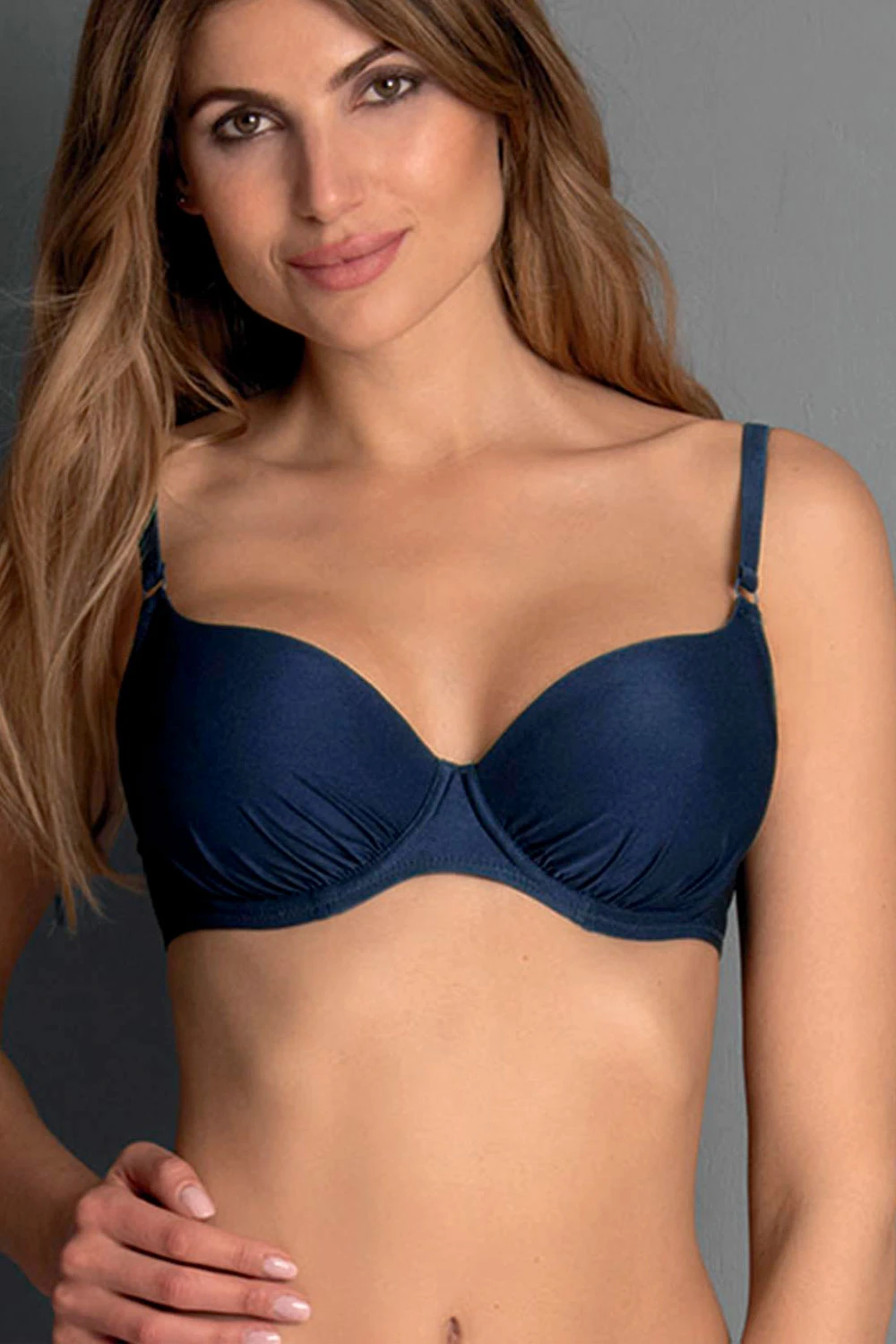 Das tief dekolletierte Bügel-Bikinioberteil Sole in zart schimmerndem Blau-Violett verleiht ein echtes Traumdekolleté. Zudem überzeugt es durch seine soften Spacer Schalen – atmungsaktiv, wunderbar leicht und extrem schnell trocknend. Die hochwertige Silky Shine Ware mit Xtra Life Lycra macht das Modell super weich, hochelastisch und formbeständig gegenüber Chlor und UV-Strahlen. Hübsche Raffungen vorne am Cup setzen Akzente. Die Träger- und Rückenbreite ist nach Größen gestaffelt.