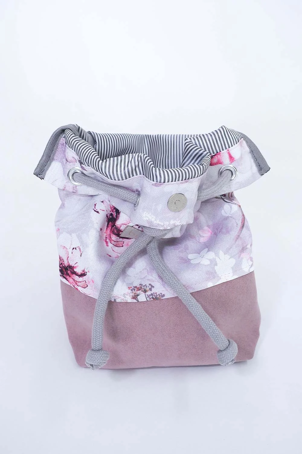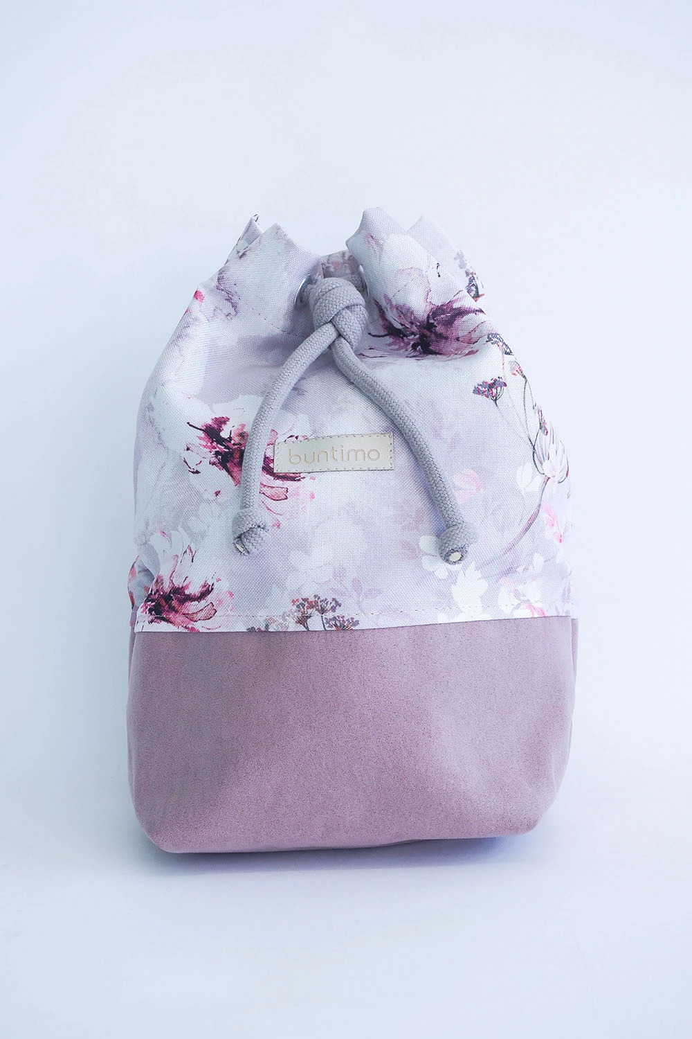 Rucksack Lili zeigt sich in schönstem Design mit modernem starken Seil, das zugleich als Verschluss und Trageriemen dient. Dekorativ hängen die Enden mit dickem Knoten über der Vorderseite. Stoff aus hochwertigem Polyester mit aquarellzarten Blüten und strapazierfähiges EKO-Leder bilden die Außenhaut, das Innenfutter ist wasserabweisend und integriert ein Reißverschlussfach für wichtige Dinge. Das schmale, tiefe Gefäß verfügt über einen Magnetverschluss. Vorn mittig bildet das buntimo-Label einen dezenten Schmuck. Das in der EU fair trade handgefertigte Produkt vereint im Style Crossbody Bag, Rucksack und Tasche. Maße ca. 35x25x14cm (H/B/T).