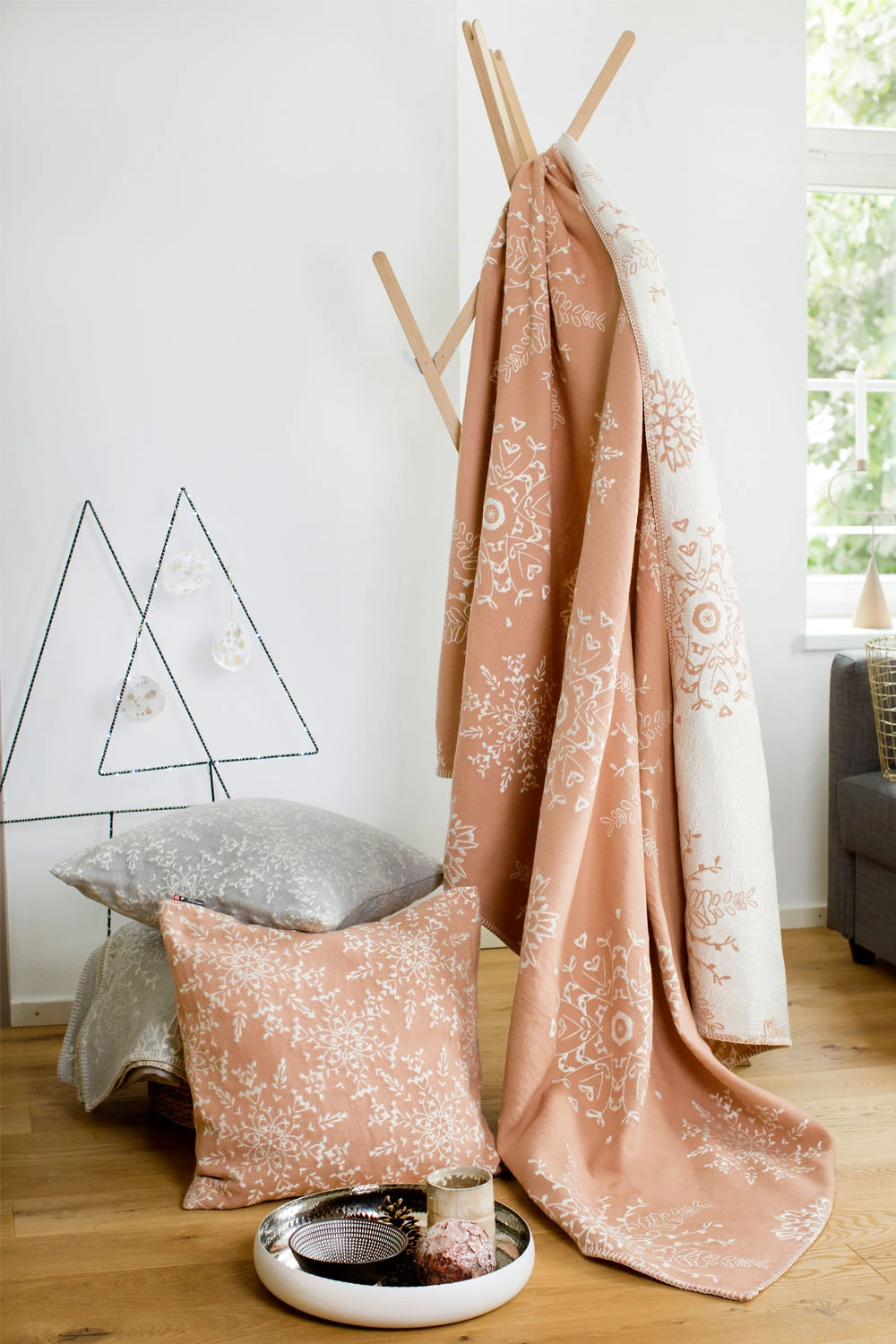 Winterliches Schimmern auf dem Sofa bringt kuschelige Weihnachtsstimmung. Die zauberhafte Überwurfdecke bringt ihnen genau dieses Gefühl ins Haus. Das angenehm weiche Baumwollgarn gibt den gewohnt kuscheligen Griff und die schimmernde Viskose sorgt für Glanz und Gloria. Das raffinierte Design sorgen für luxuriöse Effekte und die edle Zierstich-Einfassung für den exklusiven Look.