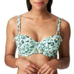 Ein tropischer Print, inspiriert vom hawaiianischen Herrenhemd. Skizzierte Palmen, Blätter, Frangipani, Hibiskus, verblasstes Rosenwasser und pastellige Minze auf jadegrünem Hintergrund verleihen pures Hawaii Feeling.
